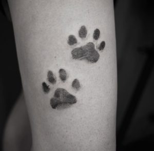愛犬の肉球をそのままタトゥーに。 言葉はなくても、ずっとそばにいてくれた存在。 嬉しい時も、落ち込ん