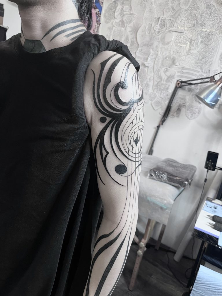 途中経過のタトゥー 五線譜、ト音記号モチーフ